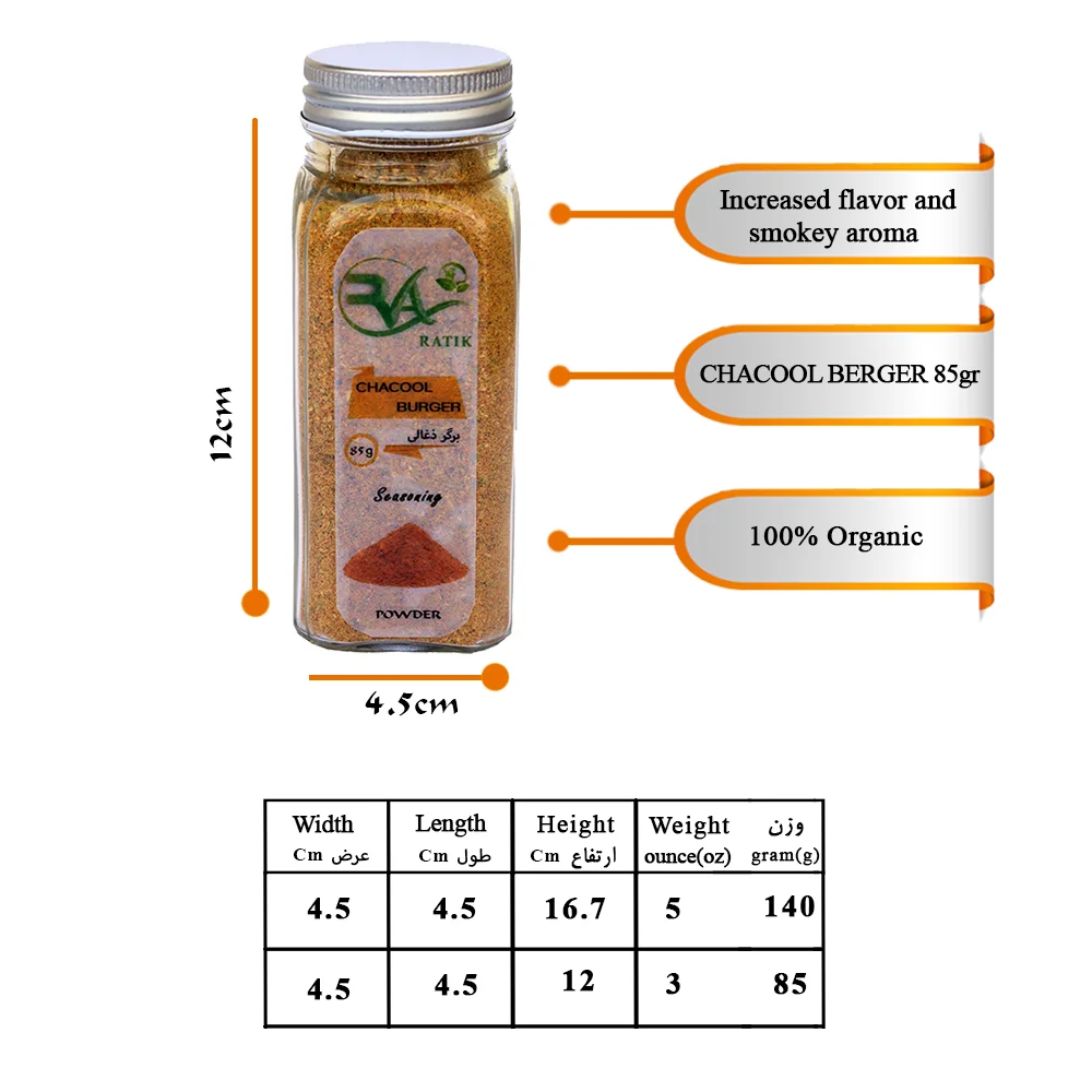 اگر میخواهید برگرهای خانگی خود را به طعم و عطر دودی یک برگر حرفهای نزدیک کنید، چاشنی برگر ذغالی بهترین انتخاب است! این چاشنی خاص، ترکیبی از ادویههای منتخب است که برگر شما را با عطر و طعمی همچون کباب روی ذغال واقعی لذیذ میکند.