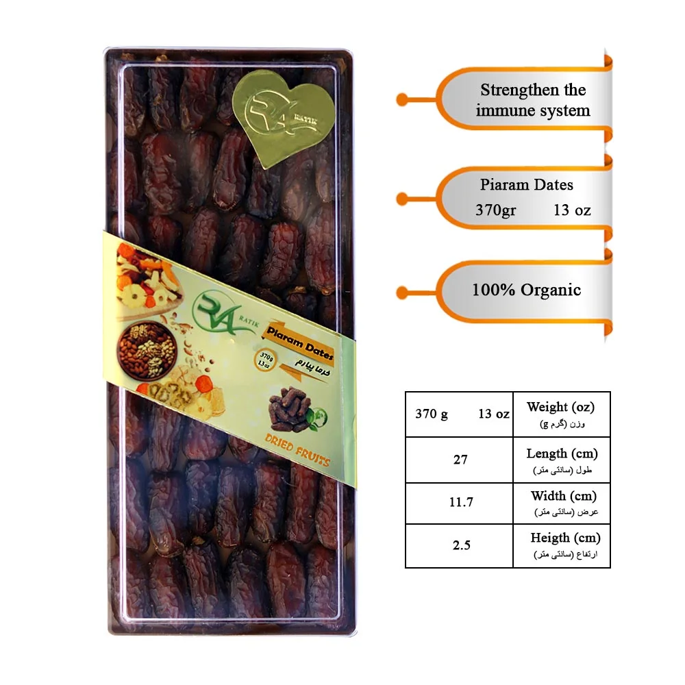 ویتامینها و مواد مغذی موجود در خرما پیارم به تقویت سیستم ایمنی بدن کمک میکنند و بدن را در مقابل بیماریها مقاوم میسازند.