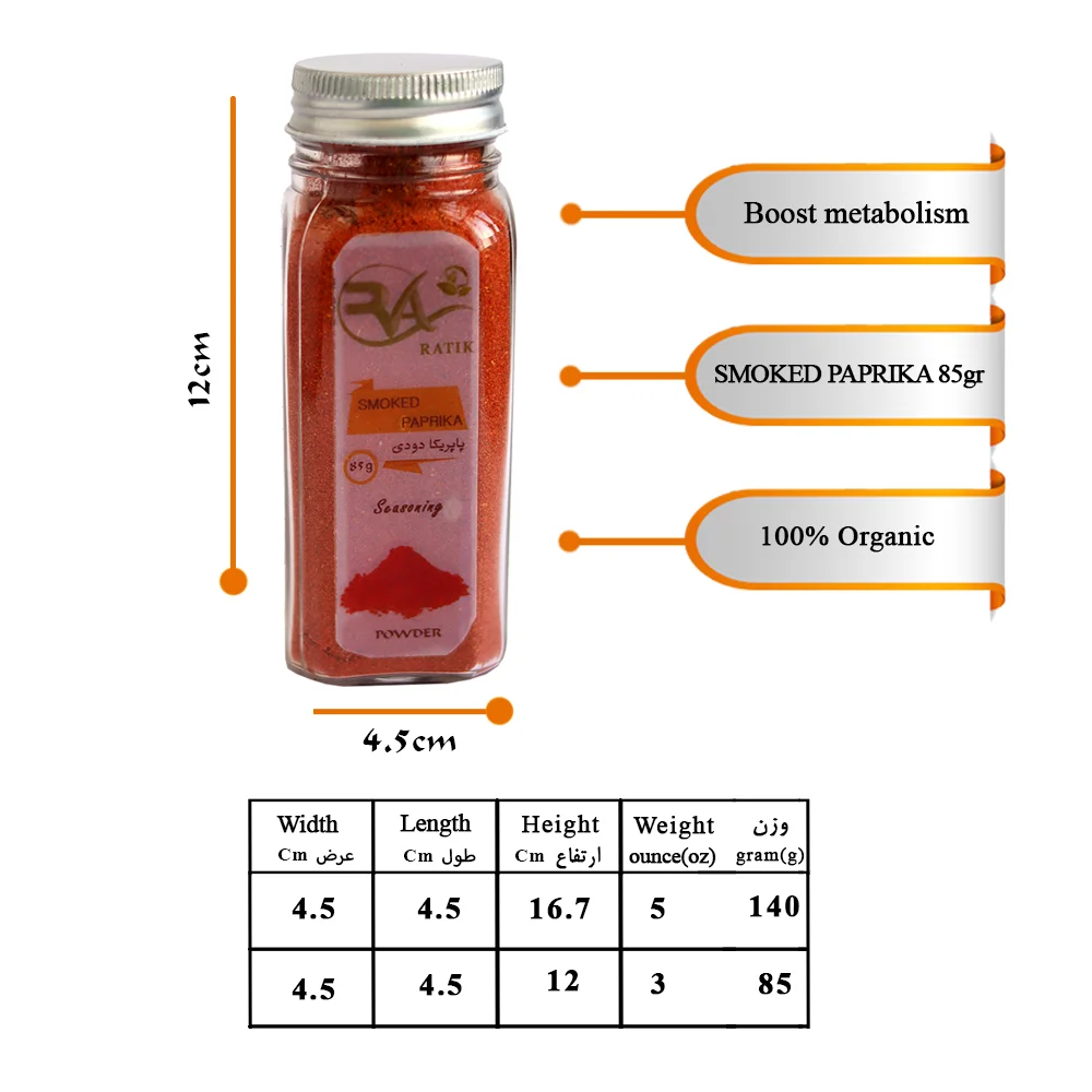 هر وعده غذایی را به یک تجربه متفاوت تبدیل کنید. پاپریکای دودی، انتخابی برای آشپزهای حرفهای و کسانی که عاشق طعمهای منحصربهفرد هستند.